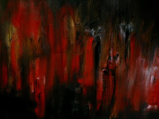 La silueta tiene el pelo pegado en el rostro. Tiene un rostro sucio y lamentoso. Se lamenta casi en silencio, con los brazos muertos en los flancos, con las palmas que miran los faros, los ojos que miran los faros. Algo ha sangrado en ella. Su cuerpo o el de otro. Porque los harapos le cuelgan oscuros, como le cuelga el gesto, las uñas embarradas, el brillo enfermo en la mirada.